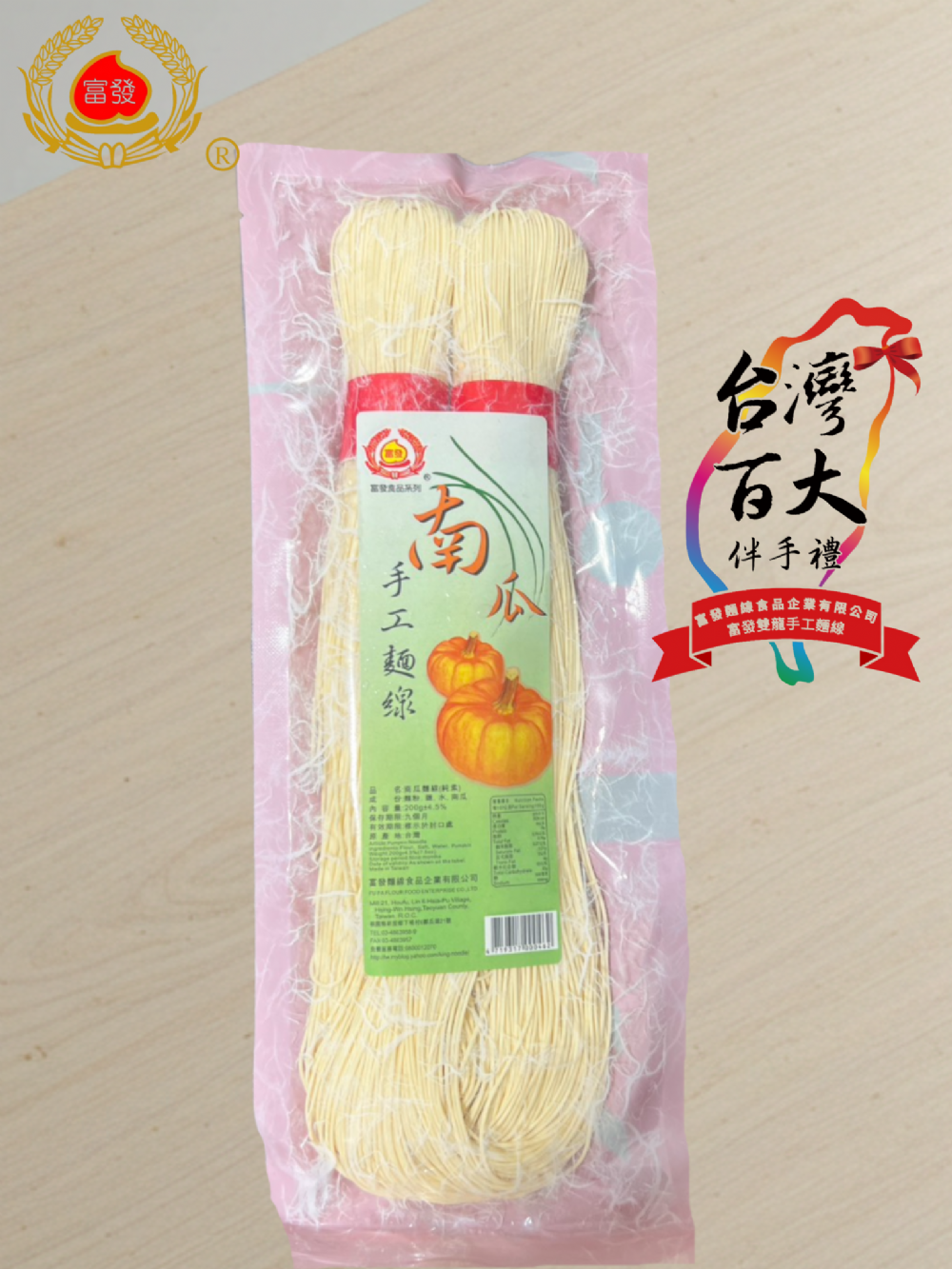 沒有色素,沒有防腐劑,南瓜削皮加麵粉手工製作的麵線。